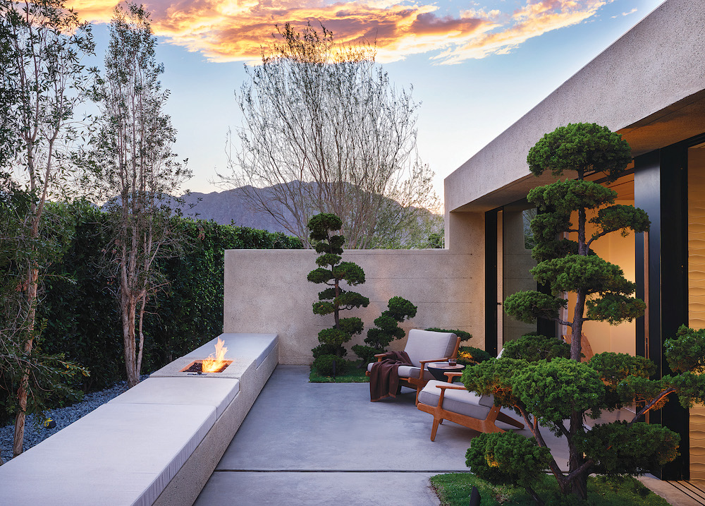 DESIGNER: Kovac Design Studio PROJECT LOCATION: La Quinta, CA DESIGN DETAILS: This vacation home, located in La Quinta’s fabled Madison Club, was designed for a sophisticated client who loves entertaining friends and family. The residence is composed of a main living space surrounded by guest casitas where visitors may retreat for a private escape. Each casita contains its own terrace and fire pit, as well as a bath with an indoor/outdoor shower, mini fridge, and bar to enjoy while taking in dramatic desert views. The terraces are separated by a sliding fence, which can be closed for privacy or opened to enlarge the space. Photo: Roger Davies.