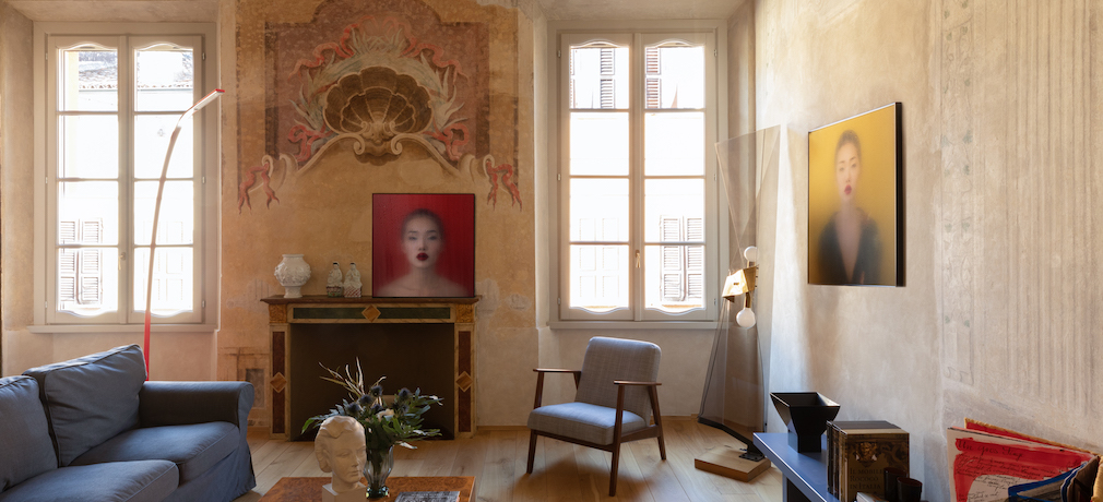 When Francesca and Luigi Piatti acquired this grand apartment in Mantua, steps from the Roman Forum and the Campidoglio, they sensed there was more to it than met the eye. The interiors were all covered in white plaster, but as the residence was situated in an aristocratic, 17th-century building, they suspected there might be something of interest beneath the surface. They honored that intuition and engaged a team of restoration experts to investigate. Slowly removing layers of plaster, the crew discovered frescoes dating to the 17th, 18th and 19th centuries. A cartouche came to light above a fireplace. A bathroom ceiling revealed an image depicting the Greek myth of Phaethon. A previous owner’s coat of arms emerged on the walls of one room, like the repeating pattern of a wallpaper.