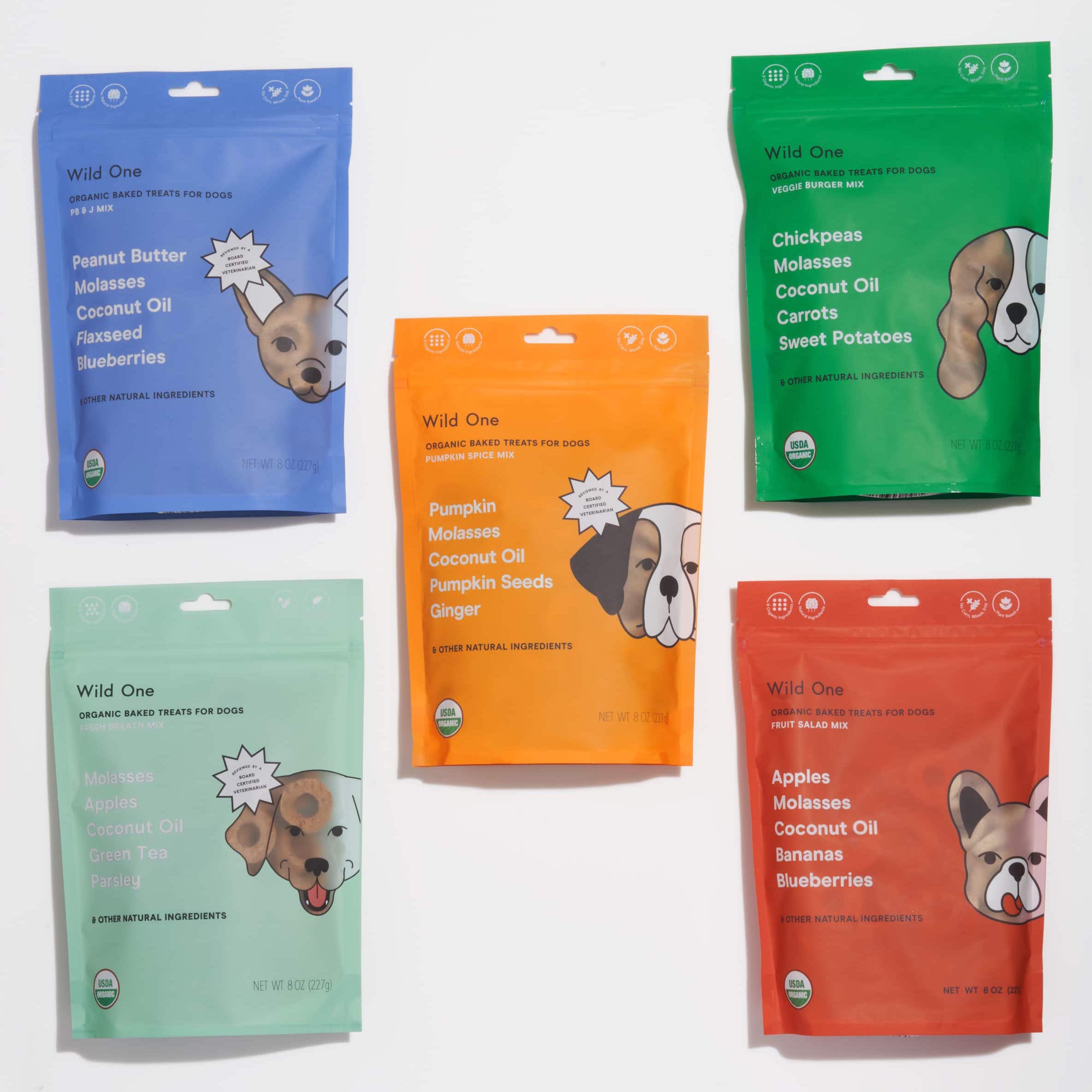 Simply clean and delicious treats for good dogs! Made with just 9 plant-based and Certified USDA Organic ingredients, these Wild Ones treats contain no artificial colors, flavors, or fillers, and are free of corn, wheat, and soy.