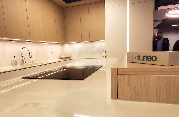 “Our nolteneo line holds a special place as one of my favorites,” says Tal. “It distinguishes itself by its meticulous attention to detail.” Nolteneo offers maximum creative freedom for designers and homeowners. For variety, it’s compatible with the rest of the celebrated Nolte Küchen offerings. However, in addition, nolteneo is built around a thoughtful drawer and pull-out system called neoBOX. The units have a narrow side frame for a sleeker profile (though additional cladding may be added for a more substantial look).