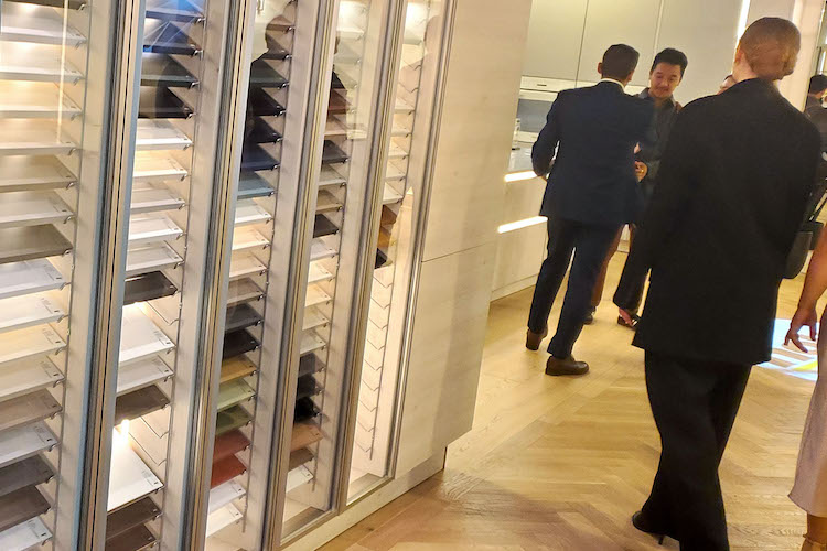 After an impressive transformation to showcase fresh product, the team at the 7 Haus showroom in Manhattan’s A&D Building was ready to party. So in the final hours of January 2024, they welcomed designers, industry insiders, and other special guests to a dramatically refreshed 7 Haus showroom. Visitors sipped wine and bubbly as they entered—wandering through impressive installations of the new nolteneo line from Nolte Küchen. A live DJ was spinning as they made their way past an expansive wall of sample finishes. And in the rear of the showroom, guests savored felafel while admiring further vignettes from the noteworthy new line. The crowd’s excited buzz was a perfect match for how enthusiastic 7 Haus founder Chen I. Tal and his diverse, talented team are about this product.