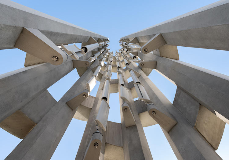 PM: I was surprised at how truly difficult it was to design a ninety-three-feet tall musical instrument powered by the wind. I was also surprised by the unique qualities and skill sets of people I came upon to help in the many unique aspects of the memorial, such as the Tower’s chime assemblies. The fact that I found a chimes artist, a musical composer and tuning theorist, and, of all things, a racer of land yachts, to help create such a feature is still amazing to me and validates the need for being open to collaboration from all types of people that one must always welcome.