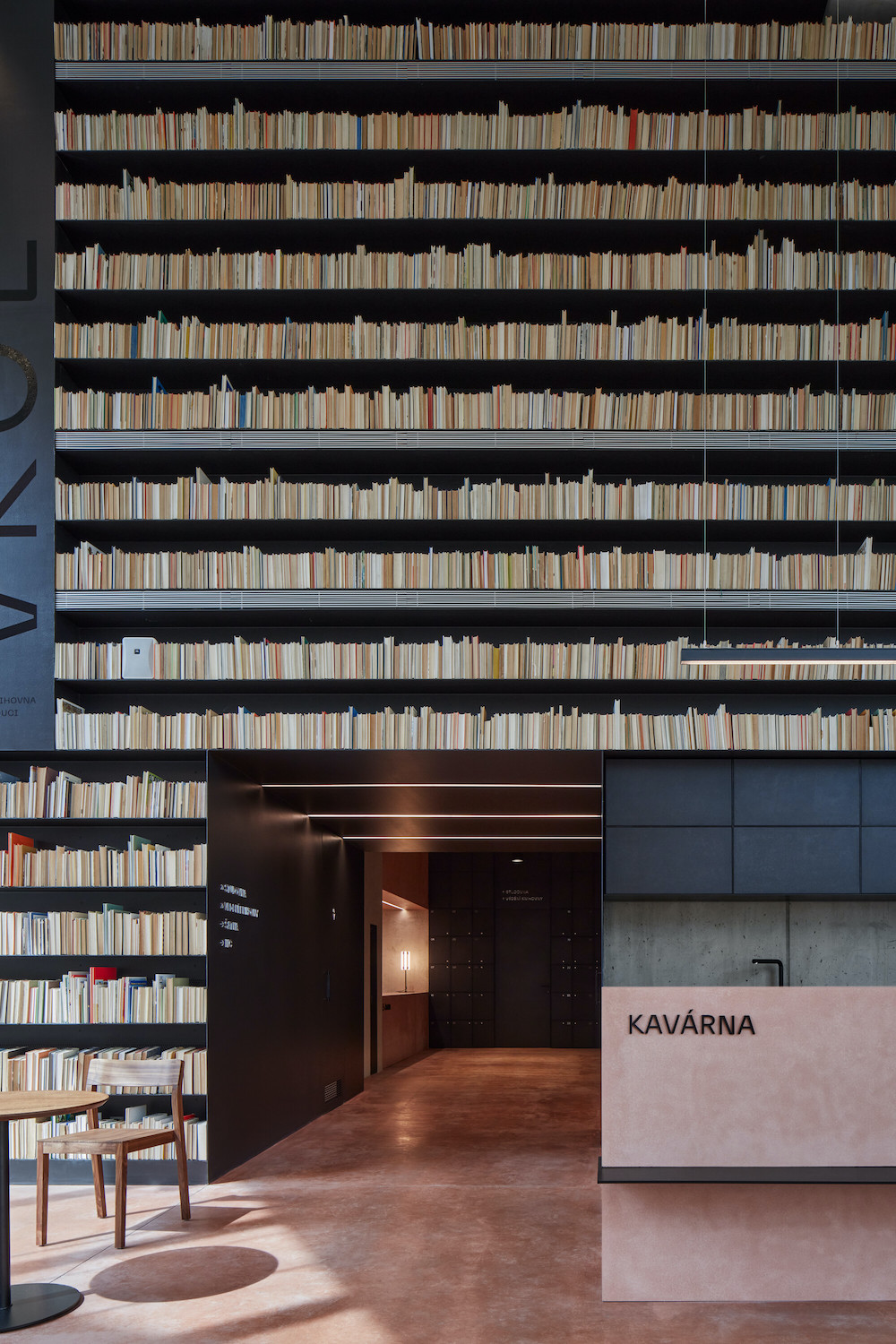 For the interior spaces, Atelier-r collaborated with Denisa Strmiskova Studio, the team paying special attention to the materials and surfaces. Most notably, the reception and café spaces that fill the main space in the modern annex are made of pastel pink concrete.