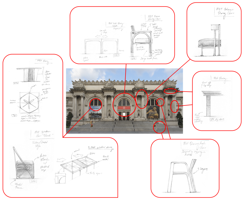 Drawing from the architectural language of The Met’s monumental exterior, The Met Façade Collection translates the building’s defining elements—including arches, columns, windows, and gridwork — into sculptural furniture forms. Spanning dining tables, chairs, consoles, and case goods, each piece reflects the Museum’s cultural presence through refined materials and carefully considered finishes.