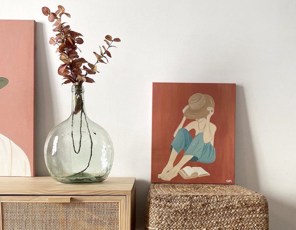 Ainhoa: I have been using acrylics for the past three years. Lately, I´m feeling curious to try and play with new materials, such as oil pastels and ink. I’m also thinking of starting to share my journey as a personal blog. I haven’t written more than in my notebook yet, but I have plans to launch the blog on my website. Follow me on Instagram—that’s where I started selling my paintings.