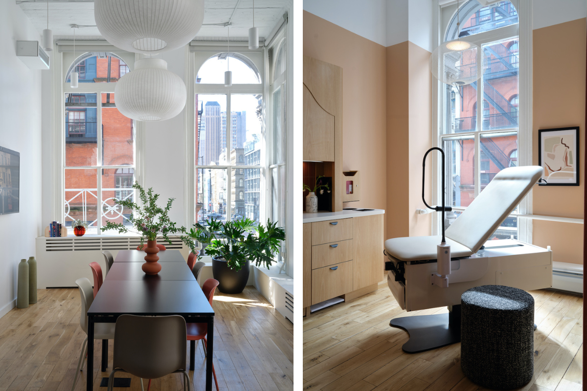 In both spaces, patients are welcomed by a hospitality-focused “living room” and led down a central corridor to consult rooms, wellness areas (with acupuncture & massage rooms), a lactation room, and a pelvic floor physical therapy room. Additionally, the SoHo space includes Tia’s signature classroom space, which will host a series of programming ranging from yoga and lactation classes to group therapy and community-based conversations.