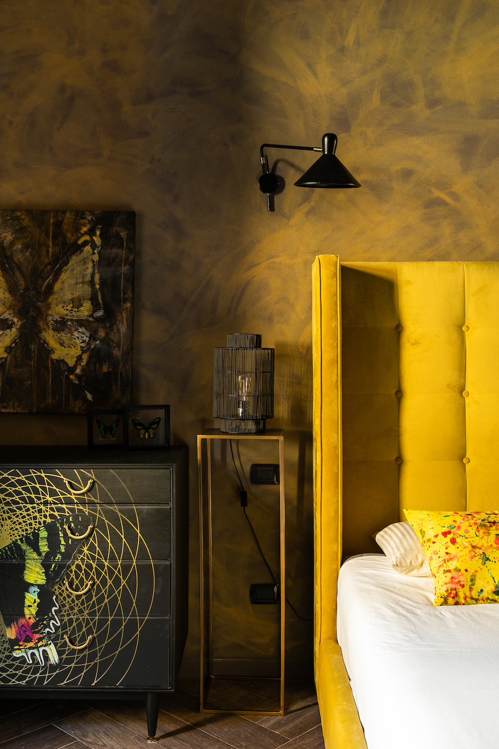 The property came into their lives almost by accident. They had been thinking of purchasing a holiday home in France when friends urged them to make a trip to Italy. “When we got here, we changed our minds,” shares Linda. While renting an Airbnb in Menaggio, Linda and Darin learned that an apartment in the Villa Castelli – right across the street – was available. Although the unit retained much of its original details, it did require some TLC. Windows and floors needed to be installed, along with bathroom fixtures and a new kitchen. Linda brought in pros to restore the various frescoes but tackled the walls of the primary bedroom herself, giving them a mottled gold treatment.