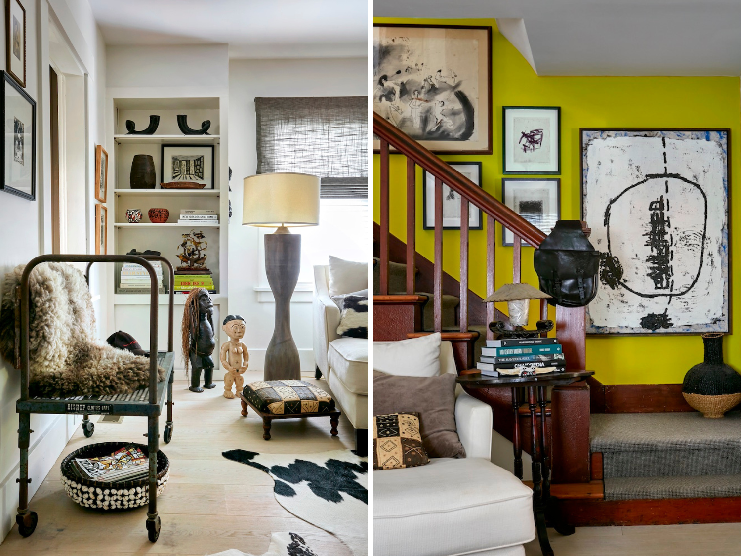 The house faces west, creating an abundance of afternoon and early evening golden light. Gallery wall; Citron paint by Benjamin Moore.