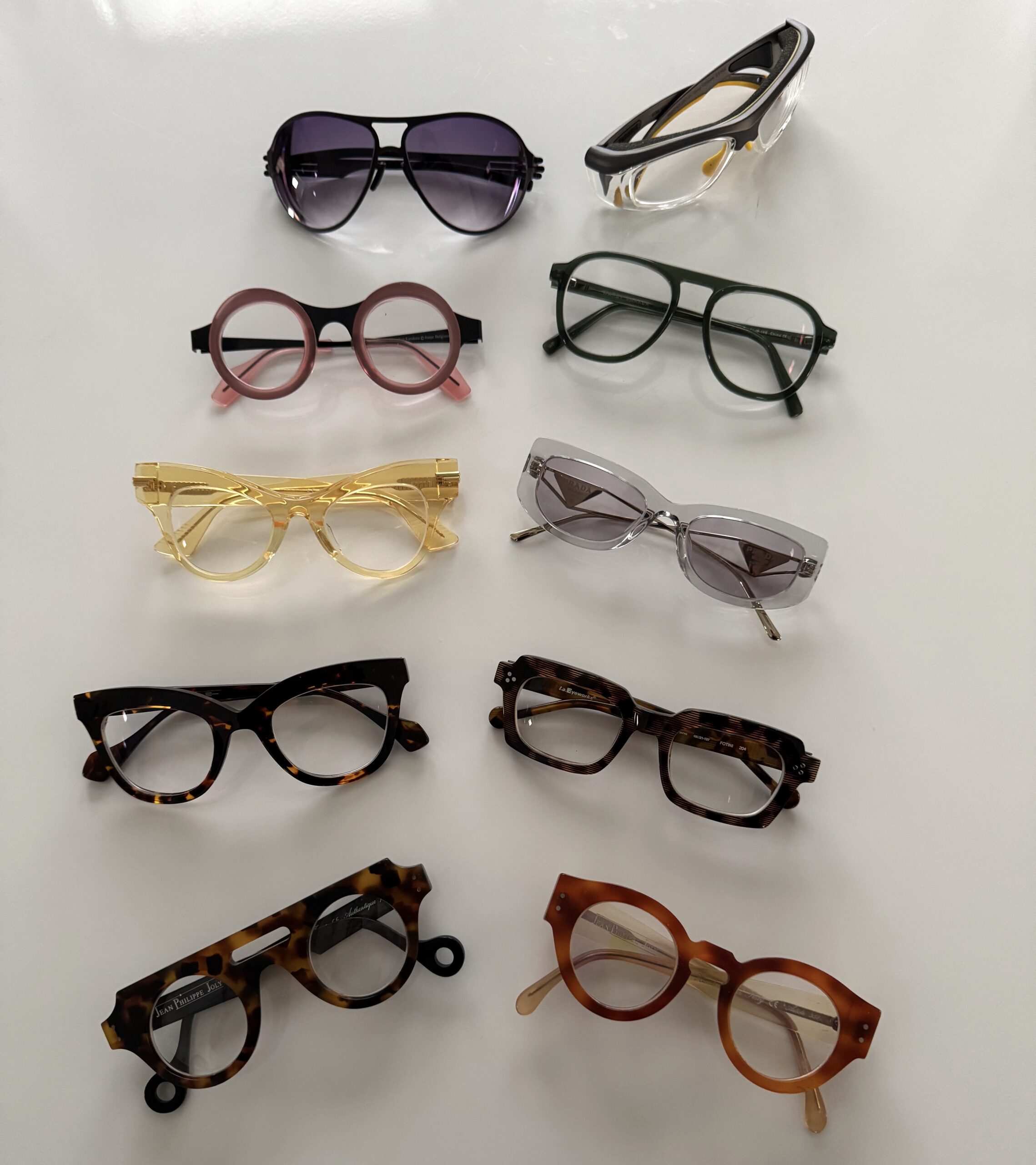 In my family, my brother visits a local optician (whom he’s known since high school) every couple of years and chooses three pairs; he then proceeds to call for a family meeting. One by one, he tries each pair on in a deliberate model-esque peekaboo fashion, creating a narrative “bit.” Sounds corny, but we all know it for what it is and have grown to love and appreciate the ritual over the years. Only one pair makes the cut.