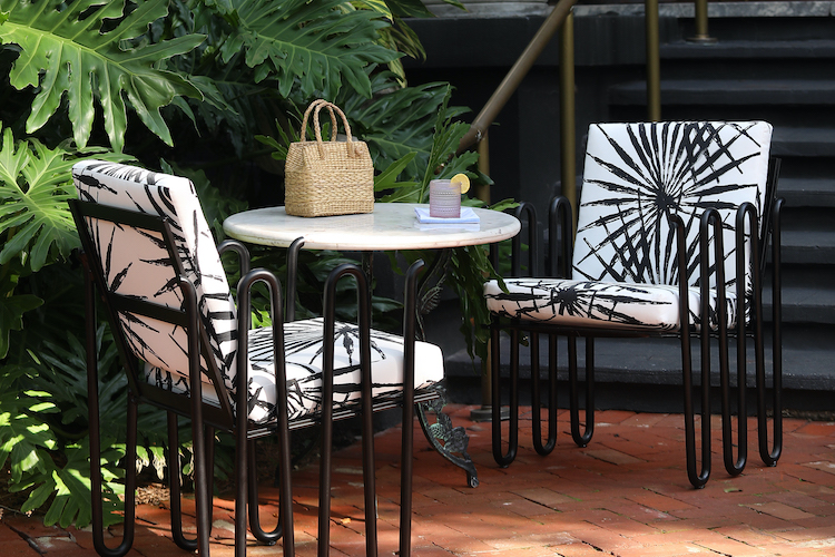 Alex Geriner: They came as a total fluke. Originally, we designed them for a local charity in 2019 – The Green Project Nola. The challenge was to build a donatable piece of furniture from at least 90% recycled materials and then auction it off at the gala. We first checked out the local metal scrap yard and found these really unique curved pieces of metal. Then we partnered with Palm Orleans and she contributed beautiful scrap pieces of her Palmetto stripe fabric in the Audubon colorway. The night of the charity was a huge success and everyone was so enthralled with the chairs. We knew we were on to something and figured out a way to build them as part of the Doorman line.