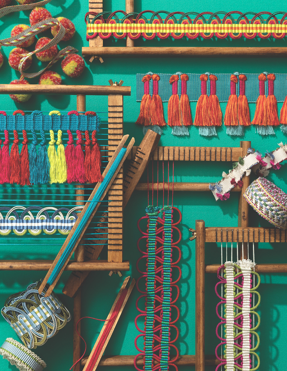 Samuel & Sons teamed up with professional passementerie artist Elizabeth Ashdown for Kaleidoscope: a contemporary collection of cords, borders and fringes in a vibrant spectrum of colors. Inspired by the artisanal heritage of passementerie, this collection is a celebration of craftsmanship that’s as energetic as it is elegant.