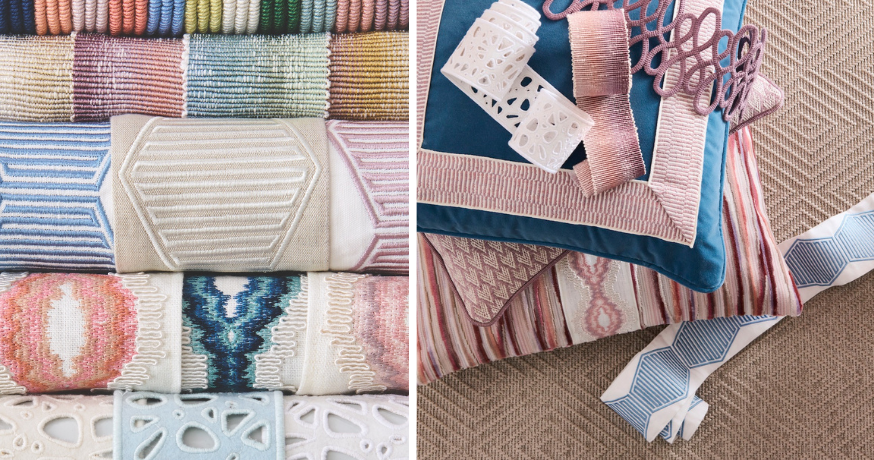 Kendall: The collection has an elegant, refined undertone and was created to appeal to various styles and aesthetics. Its softly detailed patterns and hues synchronize with the bolder, more vivid looks. While curating this collection to suit any space, we also wanted to be selective with each fabric and trimming to ensure a cohesive experience for the designer. Ultimately, I aimed to create patterns and textures that could be easily incorporated and perfect for any interior design style.