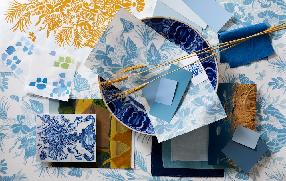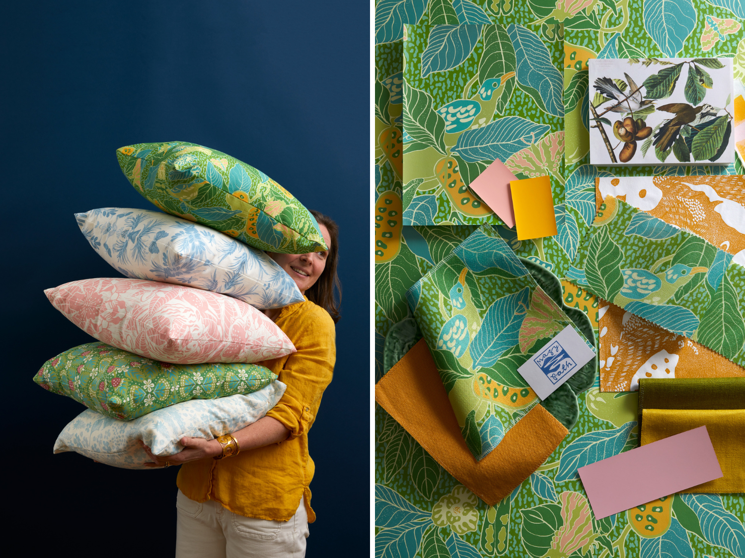 AA: The ideas for each of my wallpaper collections – Community Garden, Treasure Tree, and Heirloom – all come from the world of plants. The designs that I pulled from those collections for the Companion textile collection had a range of inspirations, from pawpaw trees to heritage grains. I named the textile collection “Companion” in reference to companion planting, an agricultural method in which crops are planted in close proximity to each other to enhance one another’s well-being. In that spirit, my wallpapers and textiles are printed on different grounds – clay-coated paper versus Belgian linen – but they share patterns in common. Paired together (with a print thrown in for good measure), they bring a full suite of wallpaper, textile and art possibilities to an interior.