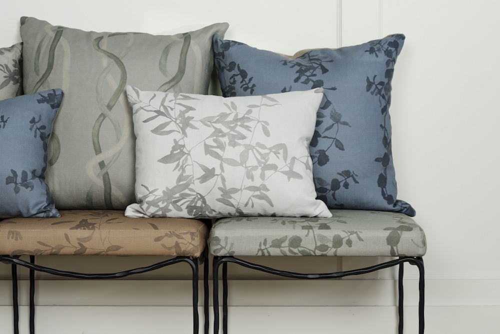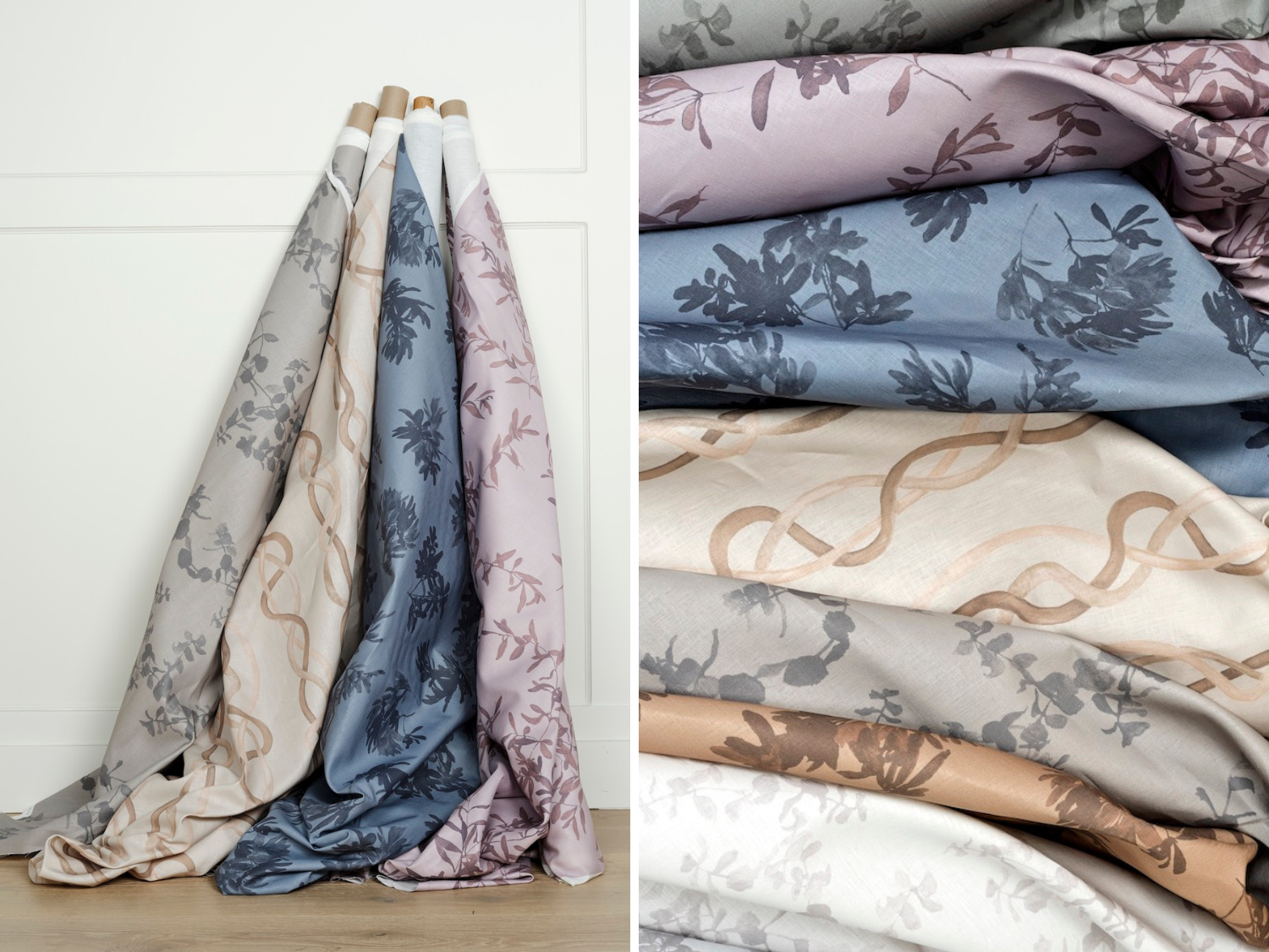 JM: Nature is my perennial muse. I’m endlessly captivated by the intricate details of the natural world – the myriad colors, organic shapes and diverse textures. The creative process began with my original watercolor paintings, which served as the foundation for the fabric designs. We wanted to preserve the hand-done, artistic feel, ensuring the patterns retained an organic, imperfect quality. After the watercolor paintings were completed we scanned them, then made digital adjustments for repeat patterns and color matching. We worked closely with our printing partners to test different fabric bases and print techniques to ensure the colors and texture of the fabric were exactly what we envisioned. We spent a great deal of time looking at samples of the printed fabric and making adjustments until we were completely satisfied. We wanted to honor the natural inspiration, celebrating the inherent imperfections and organic forms found in real life.