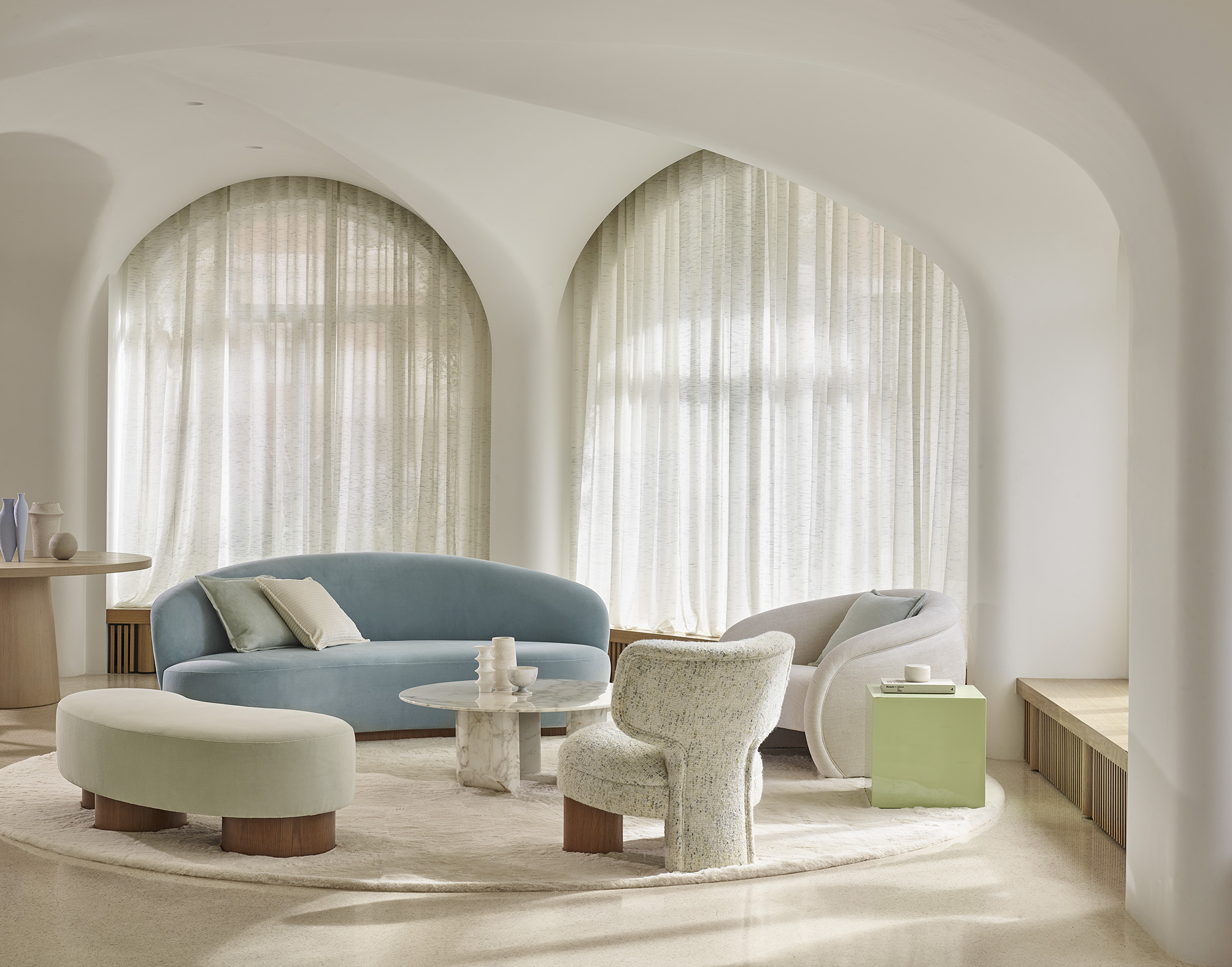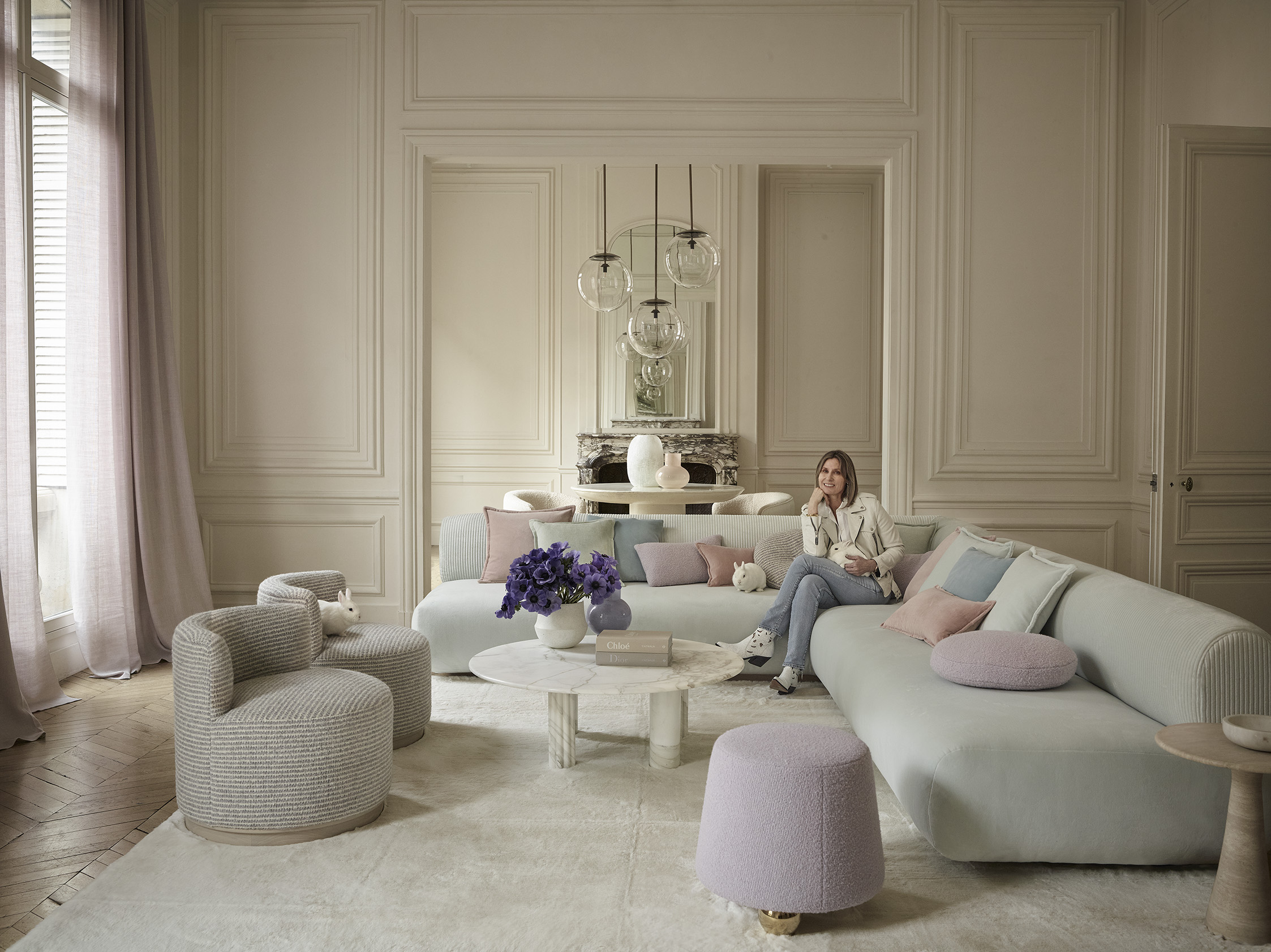 RH: I was inspired by a very Parisienne color palette, for example, the playful colors of macaroons in Paris, as well as the fashion of Dior combining soft neutrals with pops of color.