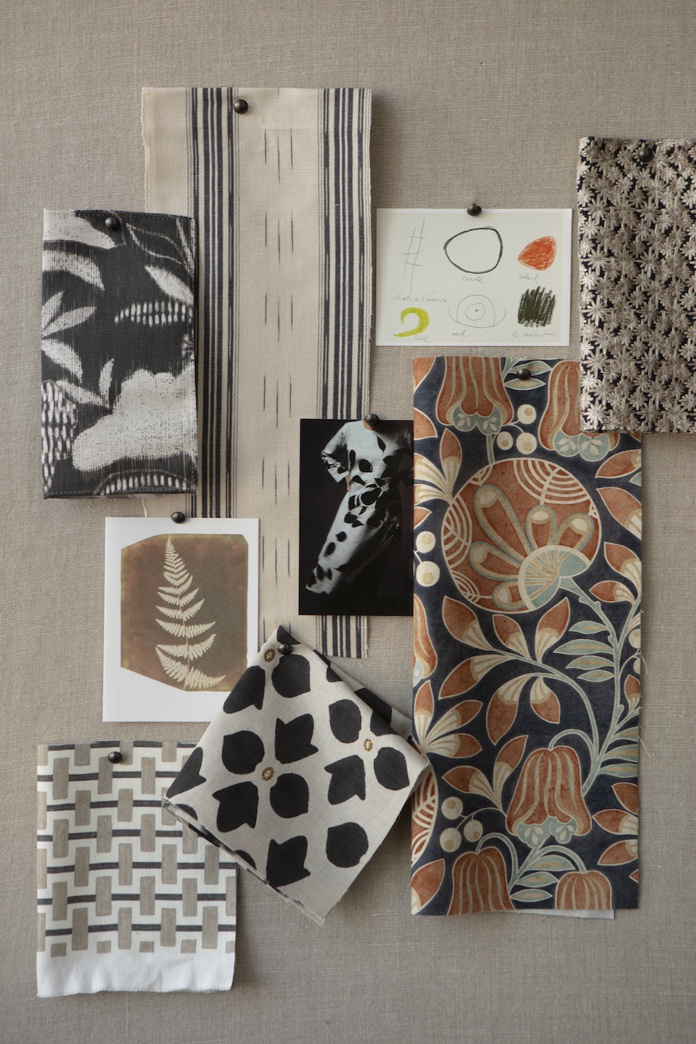 When we start percolating ideas for a new collection, our Associate Design Director, Peyton North, and I sit down and study what we have already launched and what we think the collection is missing. It takes us 6 months to a year to design a fabric from start to finish. This includes creating artwork, specifying the pattern and weave construction, and developing a color line. It then takes another 9 months for production, sampling and photography before bringing a fabric to market.