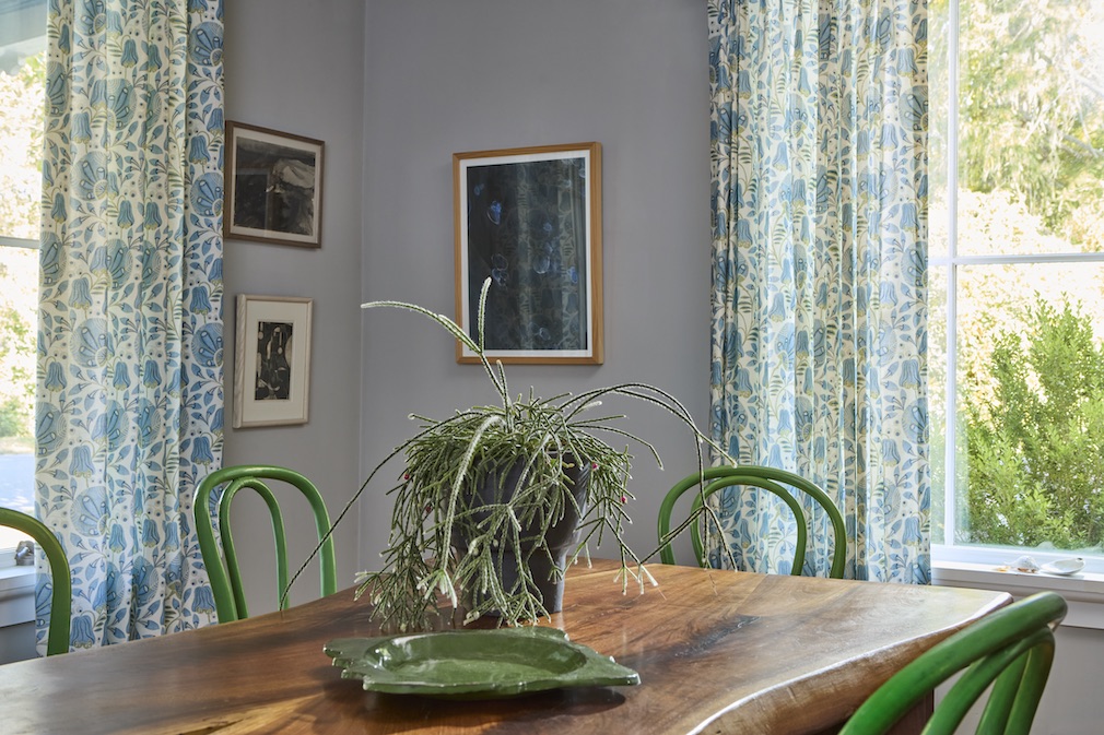 RD: Persephone is a digital print made at a 100-year-old mill in the U.K. This manufacturer specializes in recreating hand-painted details in antique documents — that’s why we chose to work with them for this traditional pattern. The all-cotton ground cloth has a crisp but casual drape.