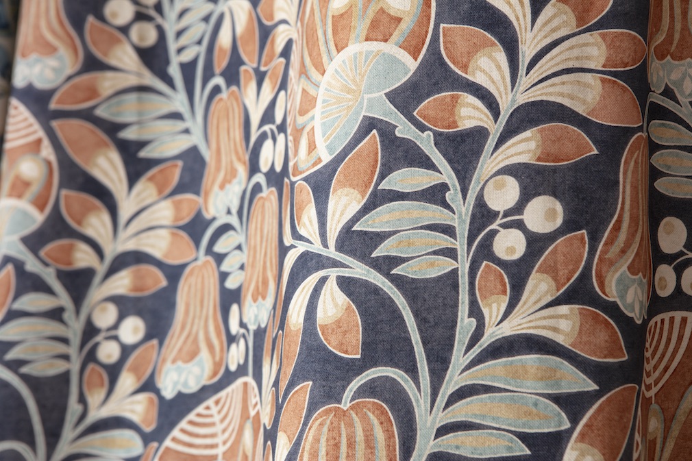 For example, the pattern for Persephone is from a hand-painted French document. We were able to print this fantastical floral in the U.K. and achieve the mottled effect of the original painted artwork.