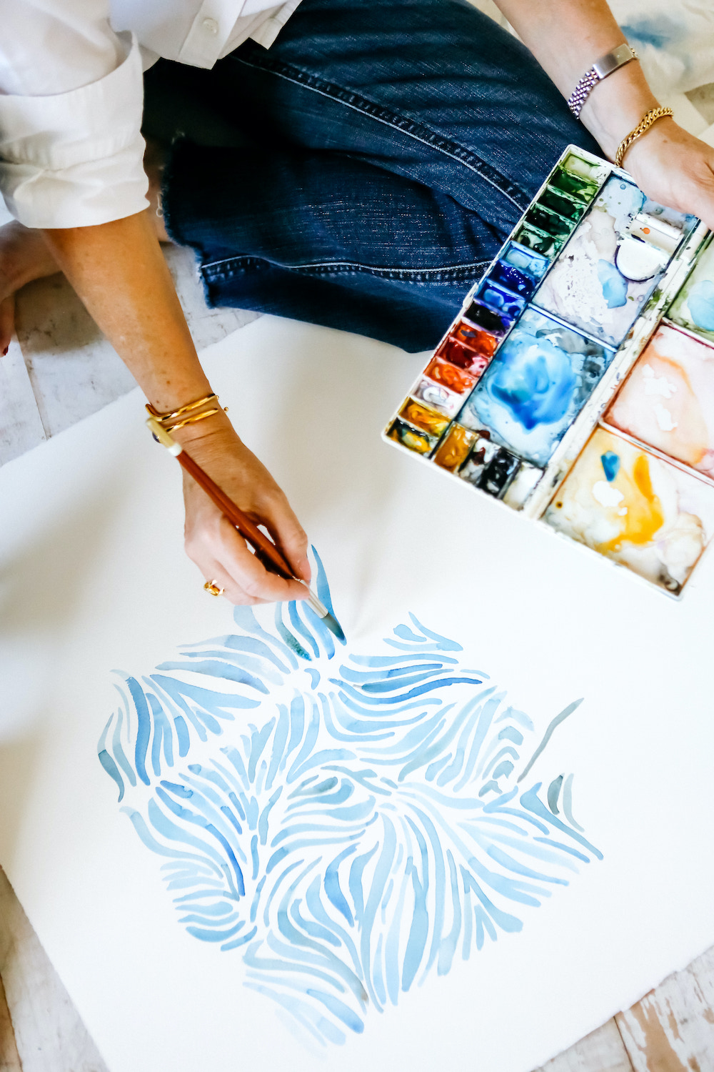 VL: I always start with a hand sketch, a thought process left over from my interior design training. Watercolor is my go-to, but a pen or pencil is fine if that’s all that’s handy. I will sketch on anything including my daily planner! I especially like watercolor for its softness and imperfections. That’s what gives my wallpaper soul. You can see that it was painted by hand. That’s also why I print these papers digitally, to retain the original painterly feel. In fact, the heavy matte wallpaper I print on looks and feels like watercolor paper which really makes the end product feel like a wall of art instead of just decor.