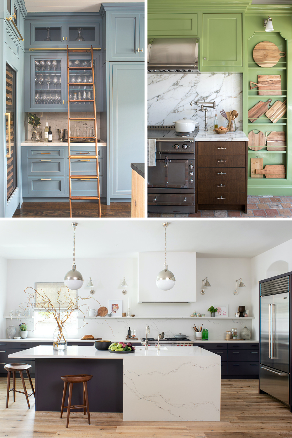 William Hefner’s trademark is designing spaces that are warm and understated, evocative and original, and always richly restful. These design goals are met in the kitchen in several clever ways. “In order to prevent stainless steel from being visually dominant in the landscape of the kitchen, I like to cover as many appliances with cabinet fronts as possible,” he notes. “Things that are super popular right now are ranges with color and metal (brass, bronze, stainless) options that distinguish the kitchen. People are lighting some of the larger-scale faucet options. More and more, people are going for steam ovens as an appliance.”
