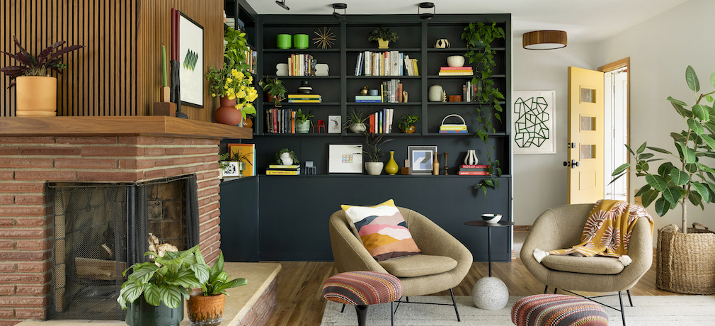 Built in 1959, the 4300-square-foot residence was designed for artist Carolyn Blish by Chicago-based architect Arnold Schaffner. Situated on several acres alongside a creek, the house is oriented to the outdoors with amply scaled windows and linked to nature by an abundant use of wood and stone. It was showing its age when current owners George Marrone and Michael Nocera acquired it, but entranced by its period charm, they didn’t hesitate to invest a little effort and give the property a sympathetic refresh. “Our initial changes were essentially cosmetic, removing wall-to-wall shag carpeting and wallpaper, and repainting,” recalls Marrone, who credits the TV series “Mad Men” for fueling his interest in midcentury design. “Later, we tackled larger renovations in the kitchen and baths once we really knew how we wanted to live in the home.”