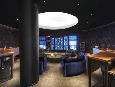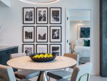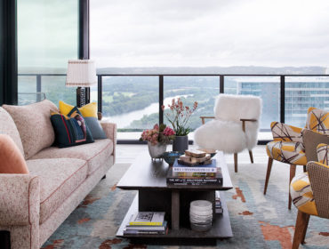 A custom mural of pineapples by Karen Maness welcomes guests into this Austin high-rise. In…