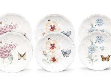 Set your table with this beautiful, 6-piece tidbit plate set featuring three pairs of small…