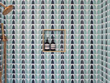LIVDEN Tiles (Pictured left to right) Modern Solstice Collection, Sunshades in Sahara terrazzo tile. Marigold…