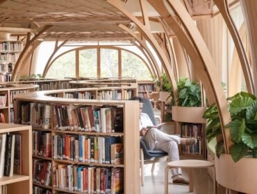 Studio HINGE‘s design for the renovation of the library at the Cricket Club of India,…
