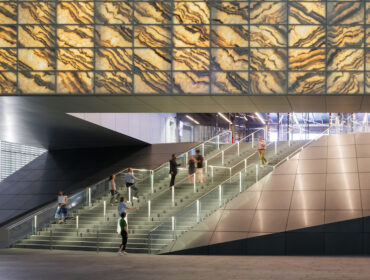 Nestled at the foot of One World Trade Center is a cube, sitting slightly askew…