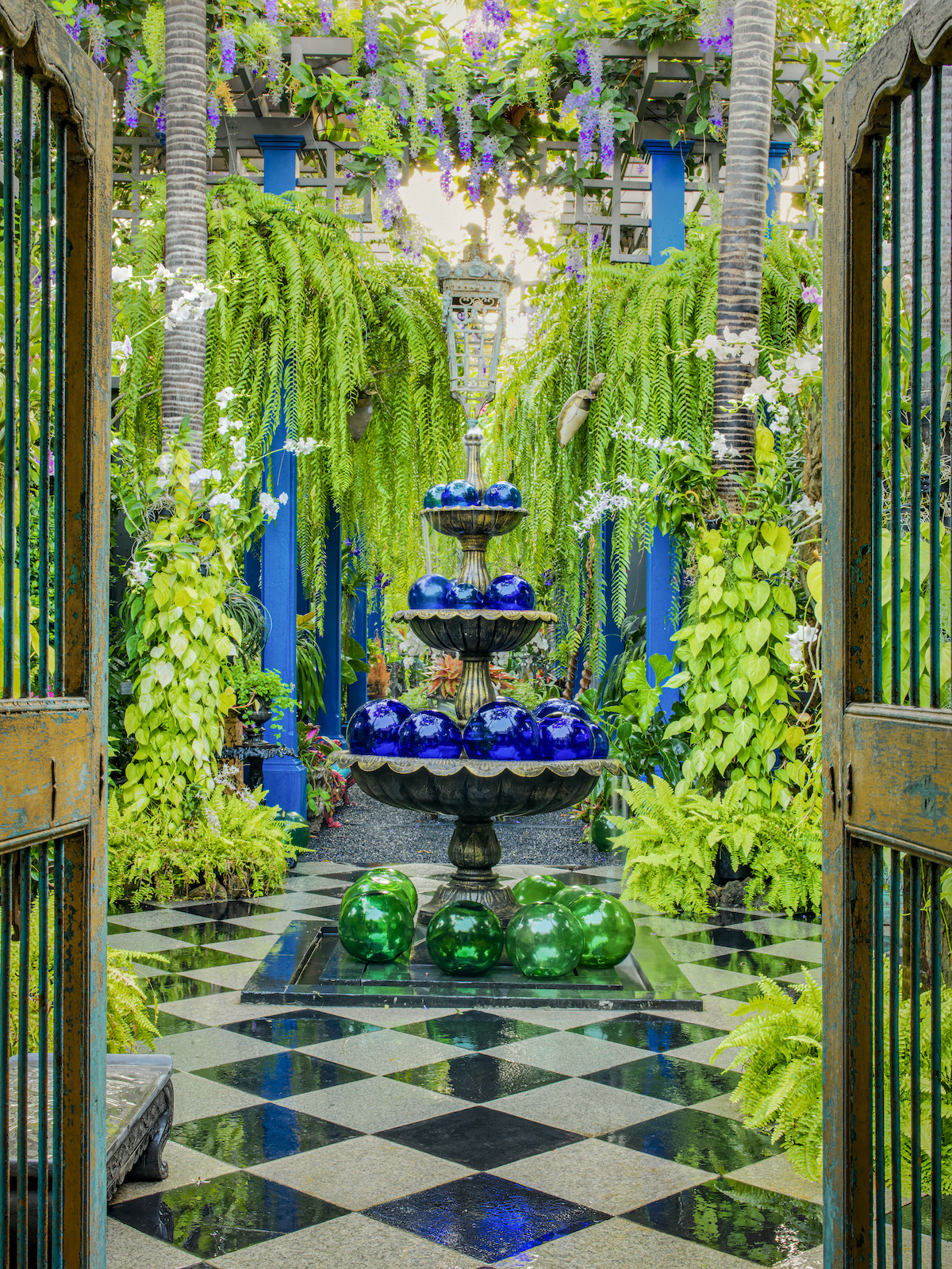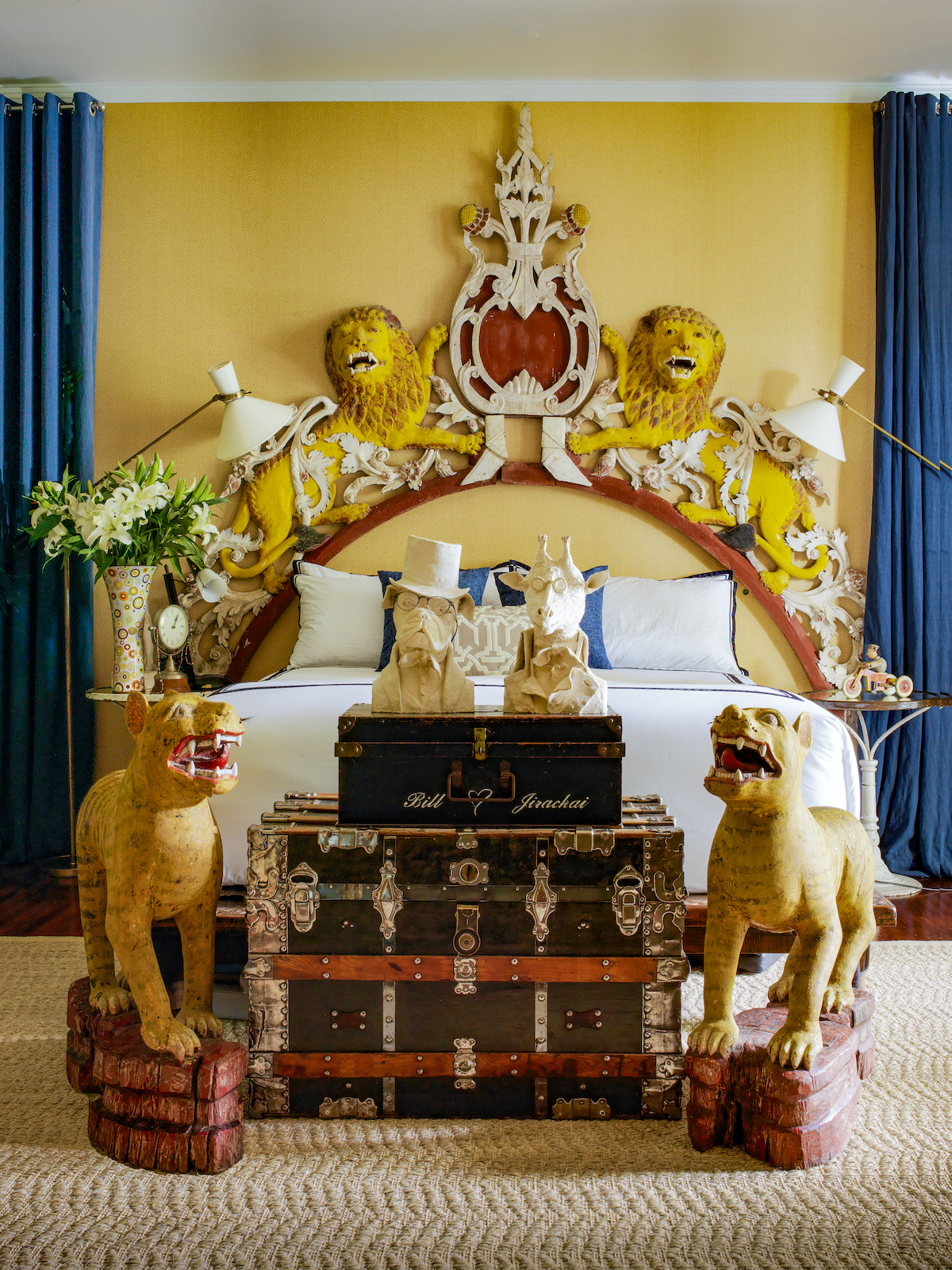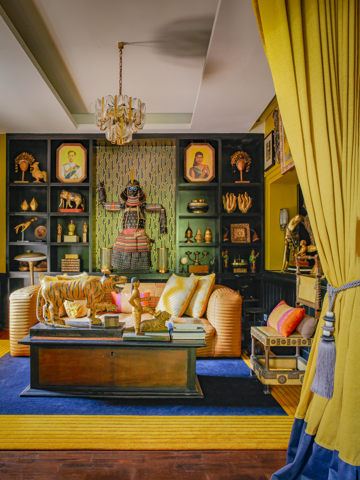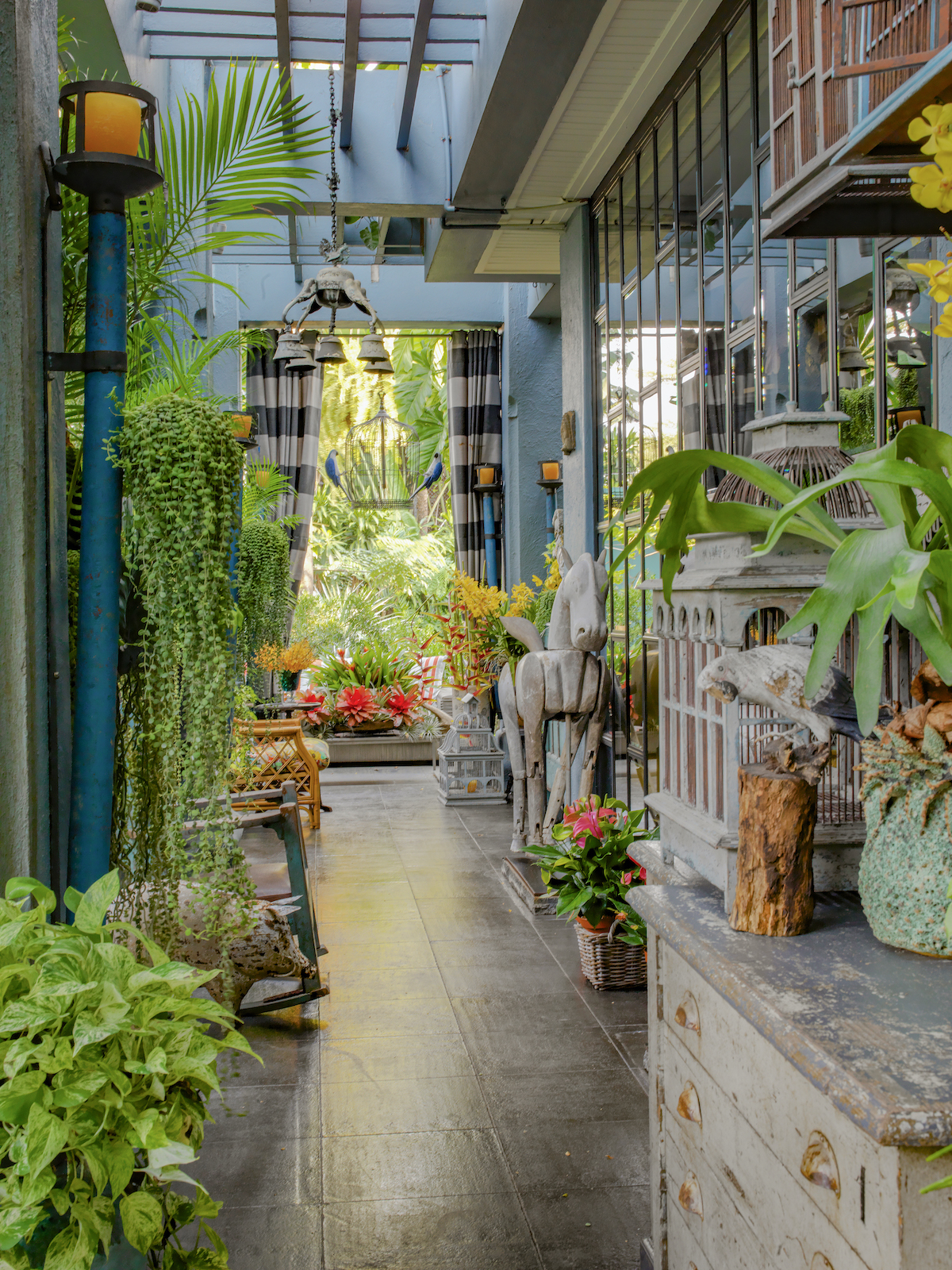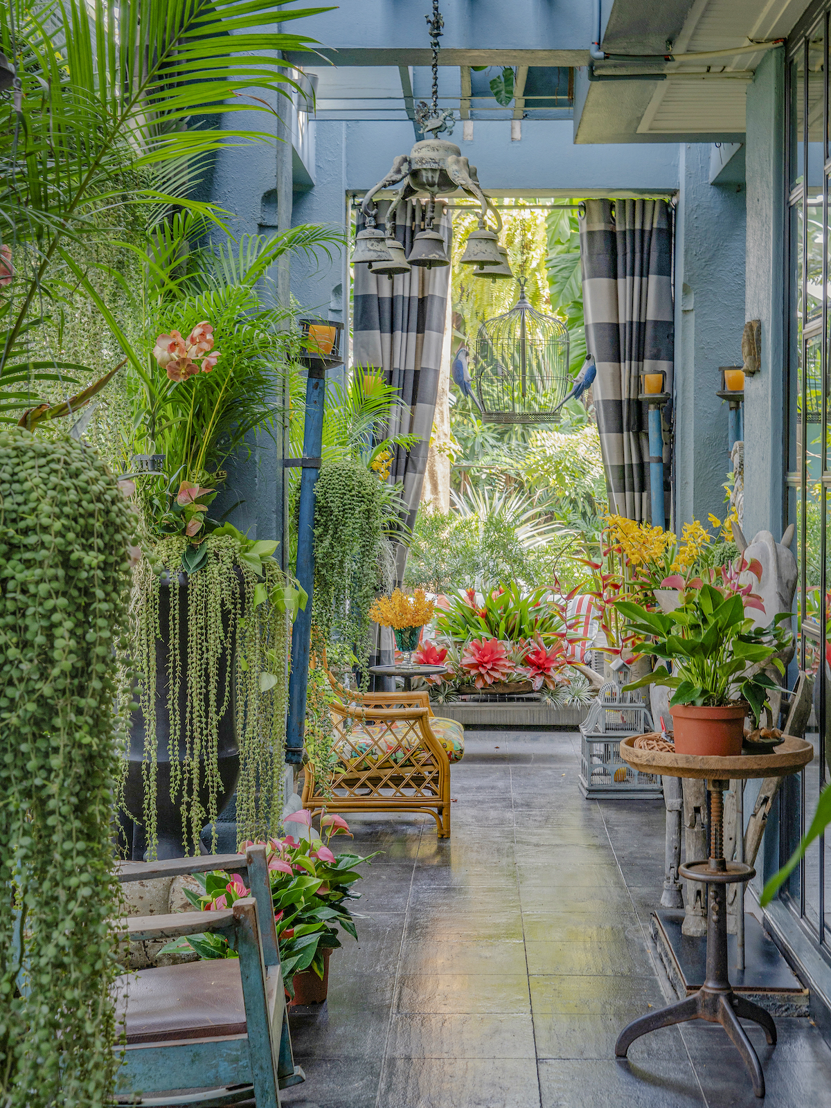 When it comes to his personal aesthetic, Bensley takes a “more is more” approach, earning him the title of “the king of exotic luxe” by industry peers. Indeed, a humorous warning is etched onto the French doors of the Bangkok home he shares with his husband, Jirachai Rengthong, a talented horticulturist: “Beware – you are entering the maximalist world of Baan Botanica.”