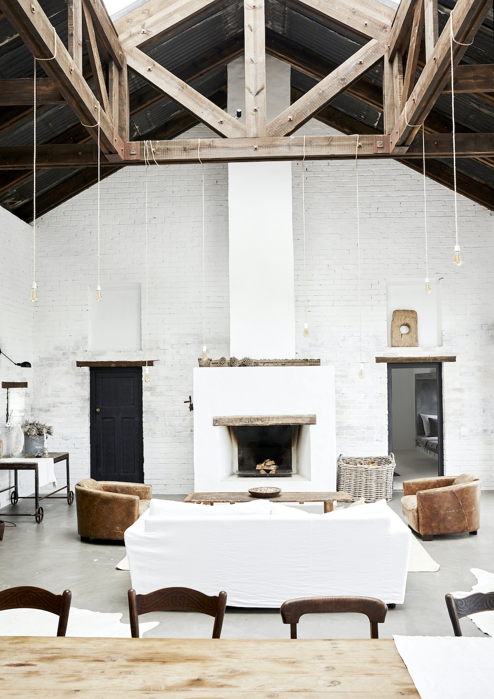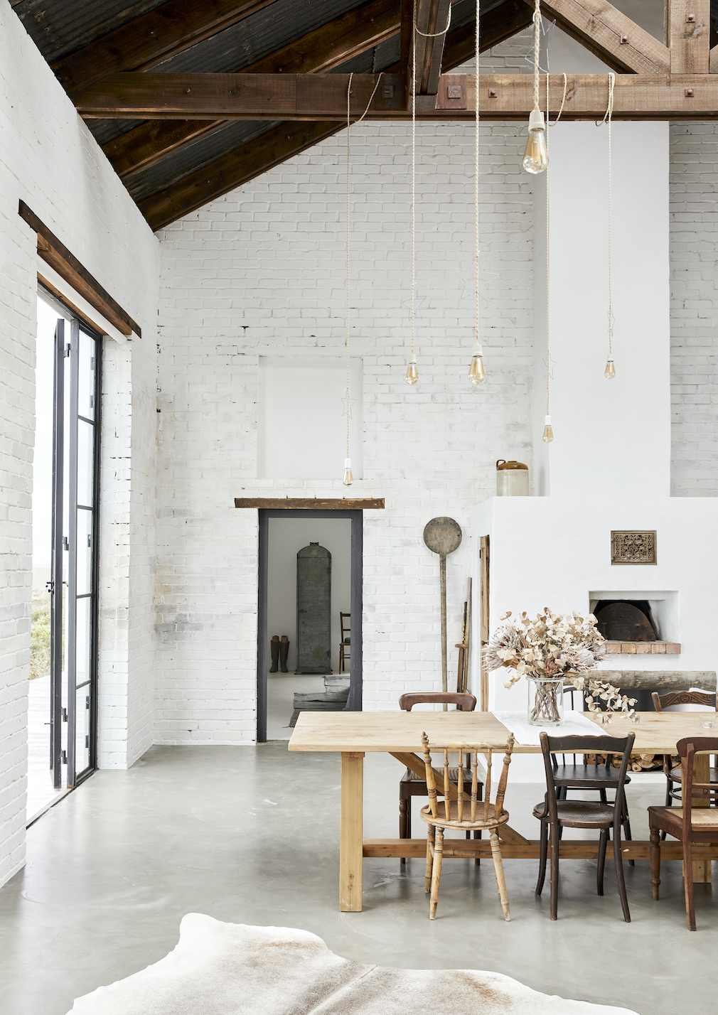 Similarly, the interior brickwork has been carefully hand-worked to generate an authentic old-school look and feel, while classic timber lintels and wooden doors were painstakingly sourced at flea markets and junkyards. Steel-framed glass doors that open onto the deck at the front of the house add another dimension of vintage appeal. These authentic finishes are further enhanced by layered interiors that combine pieces collected over many years at markets and secondhand stores with the judicious use of contemporary furnishings and all-natural textiles. “The contemporary-vintage blend is both deliberate and instinctive,” Evi describes.