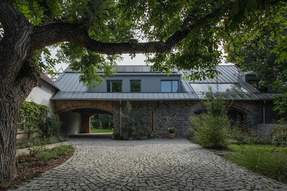 When the local planning authority nixed the idea of a greenhouse – the area is strictly reserved for the development of dwellings – the Elsners came up with a new plan: they would create a barn-inspired contemporary home dedicated to the pursuit of total relaxation. Conceived to seem as if it is an updated farm building, the house has a resolute simplicity of design. The central “barn” with its steeply pitched roof contains an open-plan living/dining/ kitchen space, flanked on either side by two large bedrooms with bathrooms en suite. The addition of a petite entryway and a storeroom on the street side of the house, plus a large wooden deck in front for outdoor dining and lounging, completes the layout.