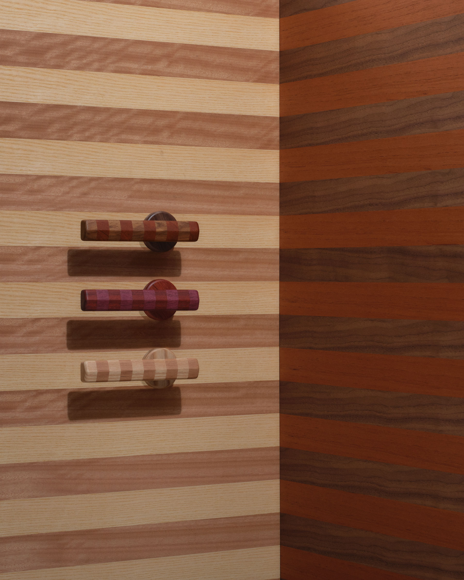 A force of nature, The Streaks is a range of sculpted architectural hardware designed by the Sydney-based interior design and architectural studio, YSG, in partnership with Bankston. Demonstrating both the beauty, dexterity and strength of timber, the spirited ensemble of door levers, pulls and joinery pieces featuring stripes in contrasting tones and playful experimentations in scale is superbly crafted from species that span the globe.