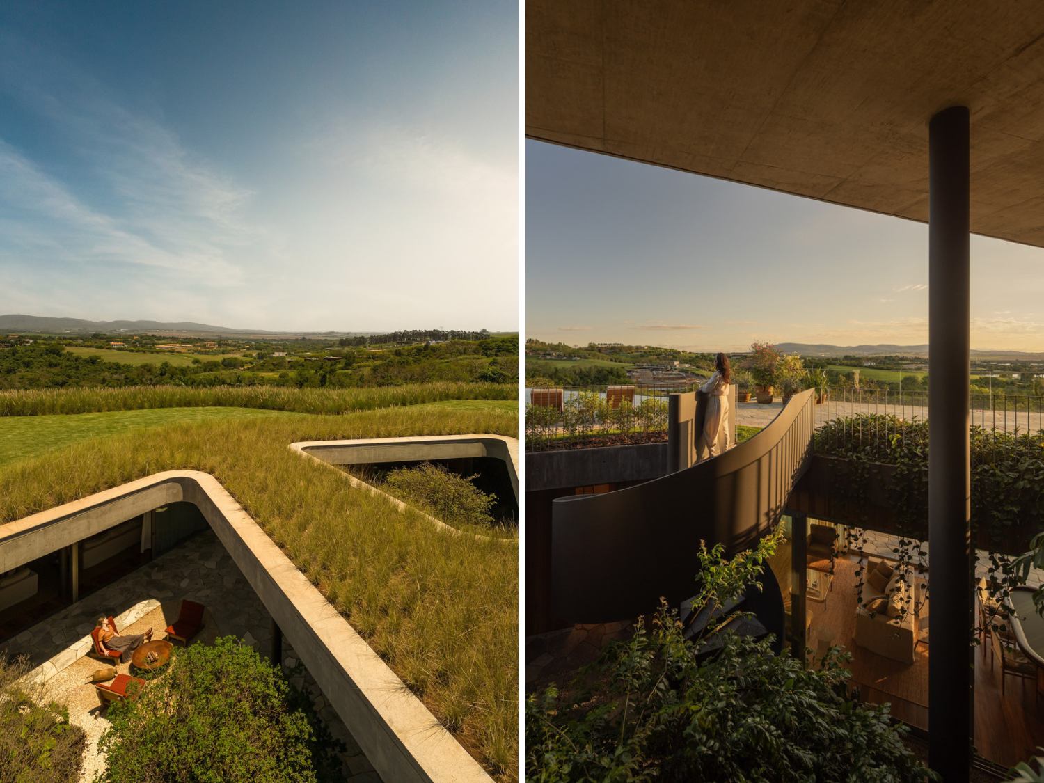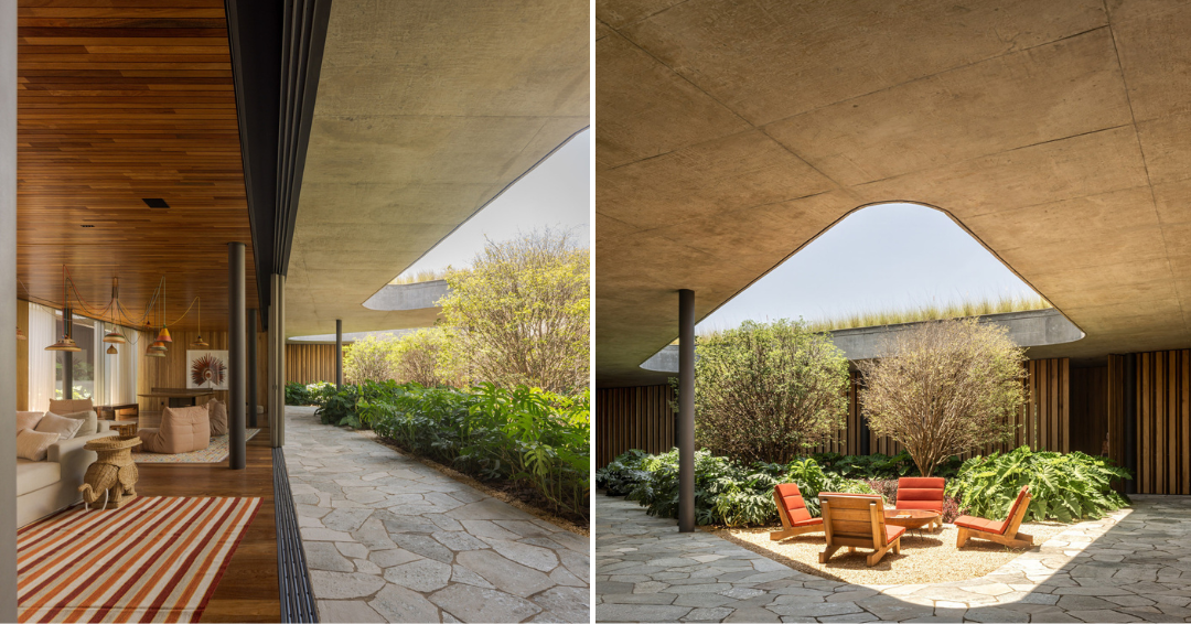 The presence of vegetation among the concrete and steel structure creates a more pleasant microclimate, reducing cooling costs and energy waste. Cross ventilation is enabled through gaps along the pavilions, and when the sliding panels are open, the interior and exterior spaces are fully integrated.