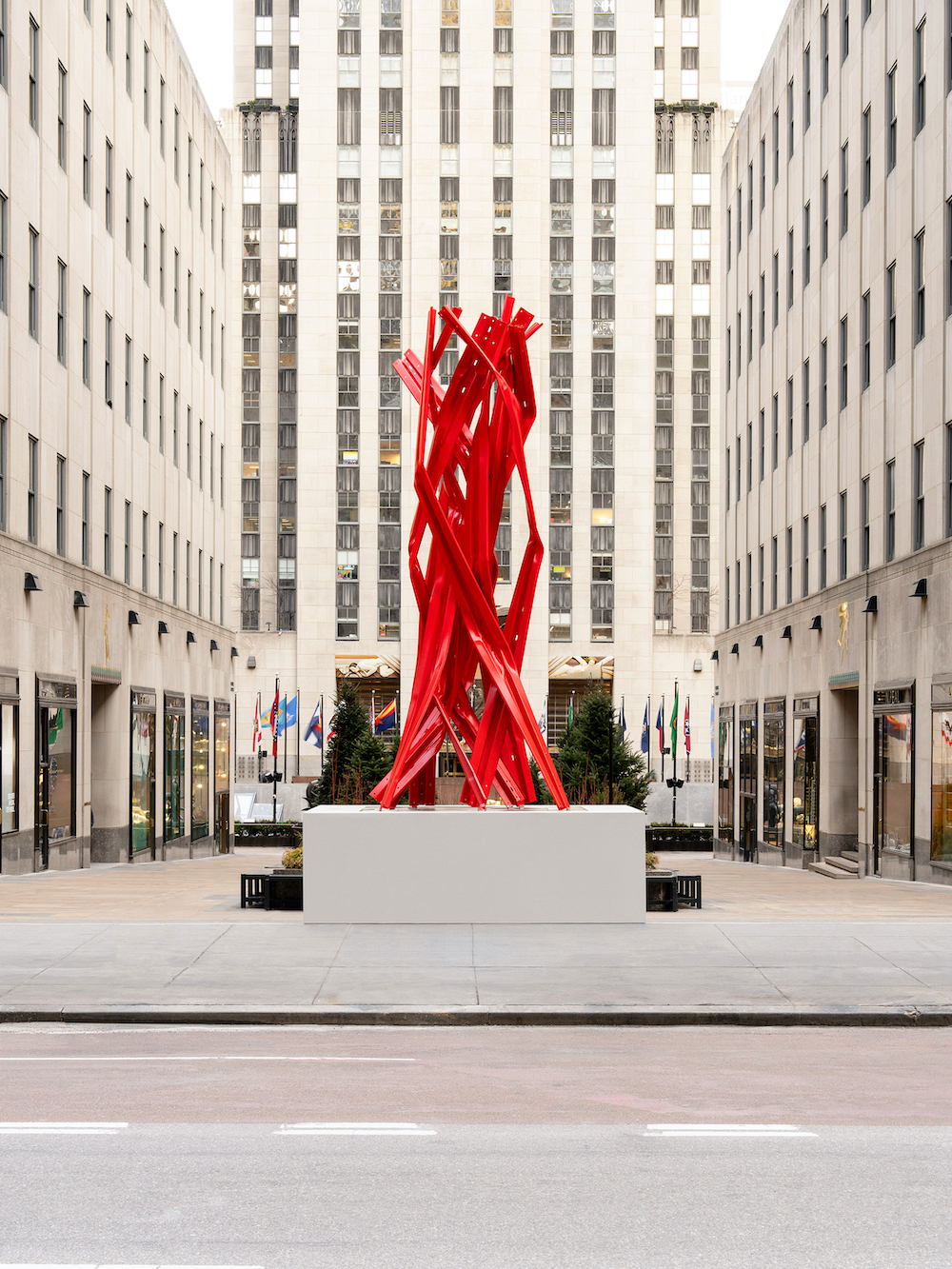 “By installing my sculpture in front of Rockefeller Center, I want to initiate a dialogue of art and architecture that resonates with the urban history of New York City,” shares Pousttchi.