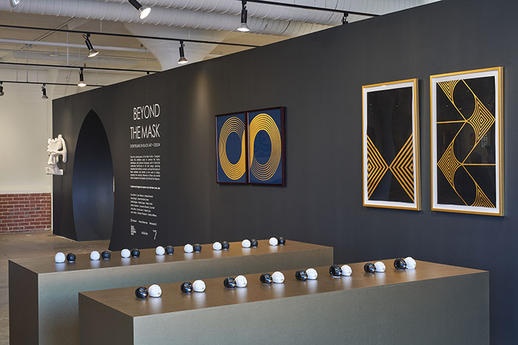 Beyond The Mask: Storytelling In Black Art And Design was curated and designed by Leyden Lewis with Nina Cooke John; featuring work from Baughaus, By Making, Cey Adams, Freya Bramble Carter, Glenyse Thompson, Hadiya Williams, Johanna Howard, Jomo Furniture, Julio Leitao, Lionel Lewis, Lisa Hunt, Malene Barnett, Marie Burgos Design, Niqui Carter, Sheila Bridges, Studio Lani and Y&V Creations.
