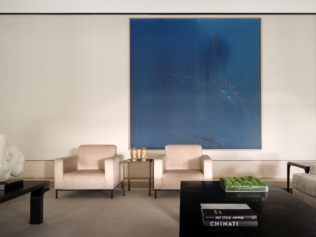 The resulting collection includes works by Pat Steir, Victor Vasarely, Jean Arp, Jules Olitski, Yves Klein, Rita Ackermann and others. It spans from the 1950s to the 21st century and, notes Corkin, “It holds together fantastically well. We didn’t always have a particular wall in mind, but then we’d move the paintings around and they would tell us where they wanted to go.”