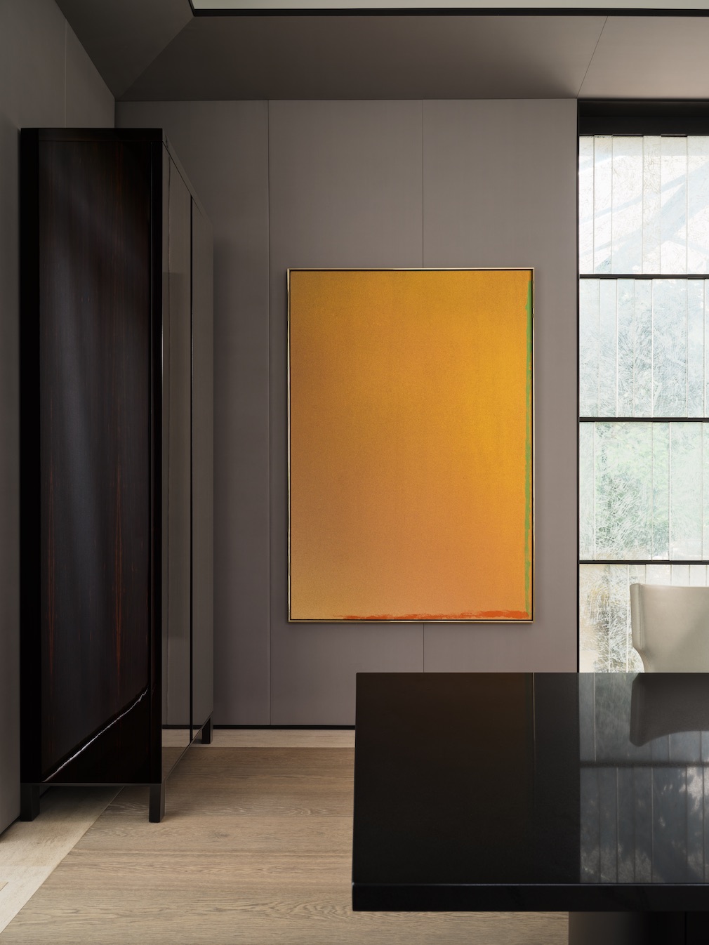 When was the last time you remember noticing that the scene stealer in an interior was actually its backdrop? This house in Toronto, designed for an empty-nester couple by Diego Burdi – the partner of Paul Filek in the interiors firm Burdifilek – is a study in how a subtle architectural envelope can thoroughly ground a design. It also proves that commandeering the limelight needn’t involve ornate cornices or dentil moldings, elaborately veined marble dados, classical pilasters or any other such ornamentation.