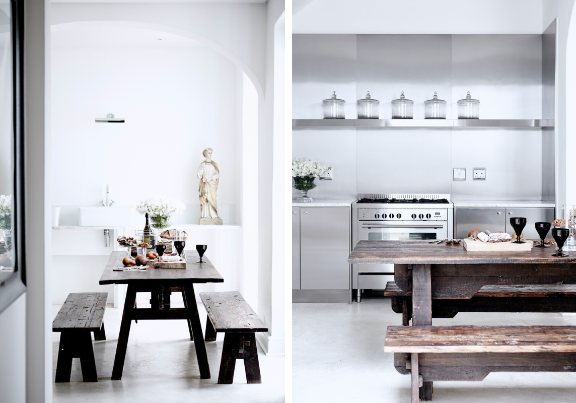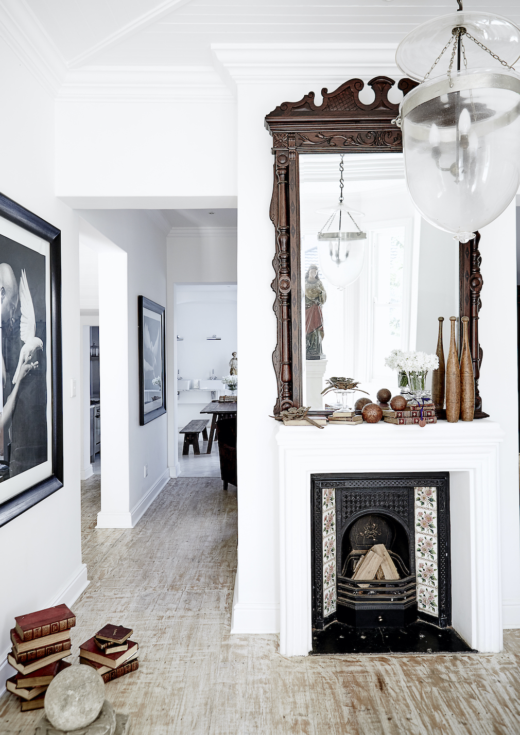 The “dump” is now white, light and bright, with soaring ceilings and back-to-back original fireplaces (with their Victorian tiles). The kitchen is clad in stainless steel juxtaposed with old, bull-nosed columns, marble countertops and reading lights on the wall. “A lot of what we did is to bring a Victorian into a modern era. It’s about throwing things together and bringing it into the new, but the integrity had to remain.”