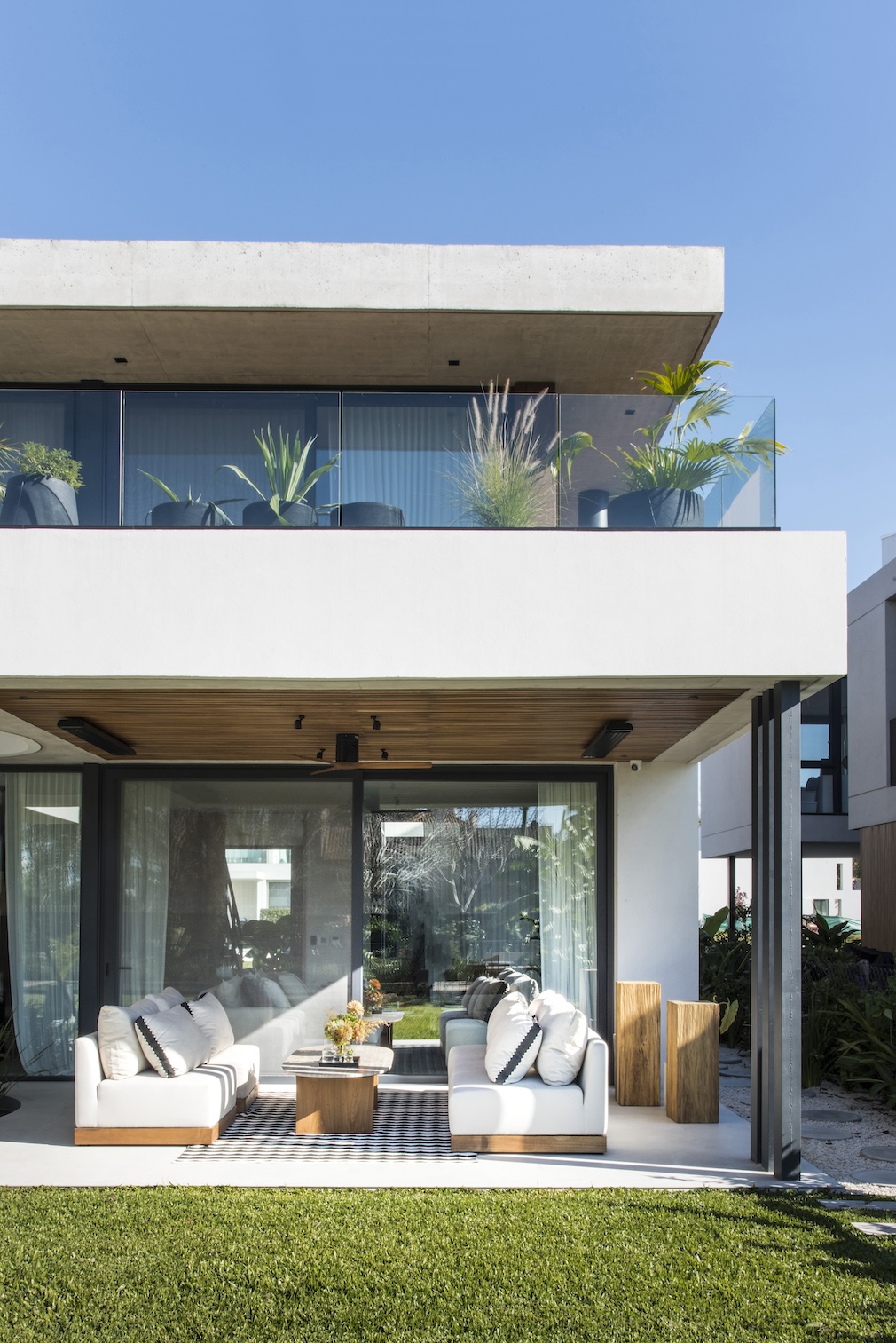 With over 3,000 square feet in total, the architectural base by Matías Goyenechea — marked by a restrained language and an honest use of concrete — finds in the interior design a tactile and luminous counterpoint that softens the geometry without losing precision or clarity.