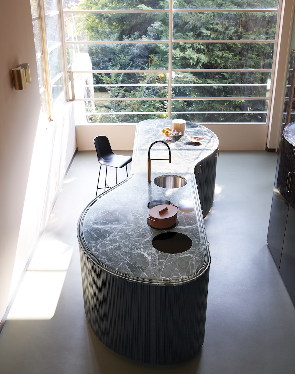 Designed by Garcia Cumini, Tangram takes its name and inspiration from the ancient Chinese puzzle of interlocking shapes. The system introduces a modular approach defined by multi-radius curved elements that allow for ever-changing, fluid compositions. With each configuration, the kitchen becomes a dynamic sculptural environment that blurs the line between function and form. From unconventional islands to seamless transitions between kitchen, dining, and living areas, Tangram’s language of curves creates spaces that feel both elevated and inviting.