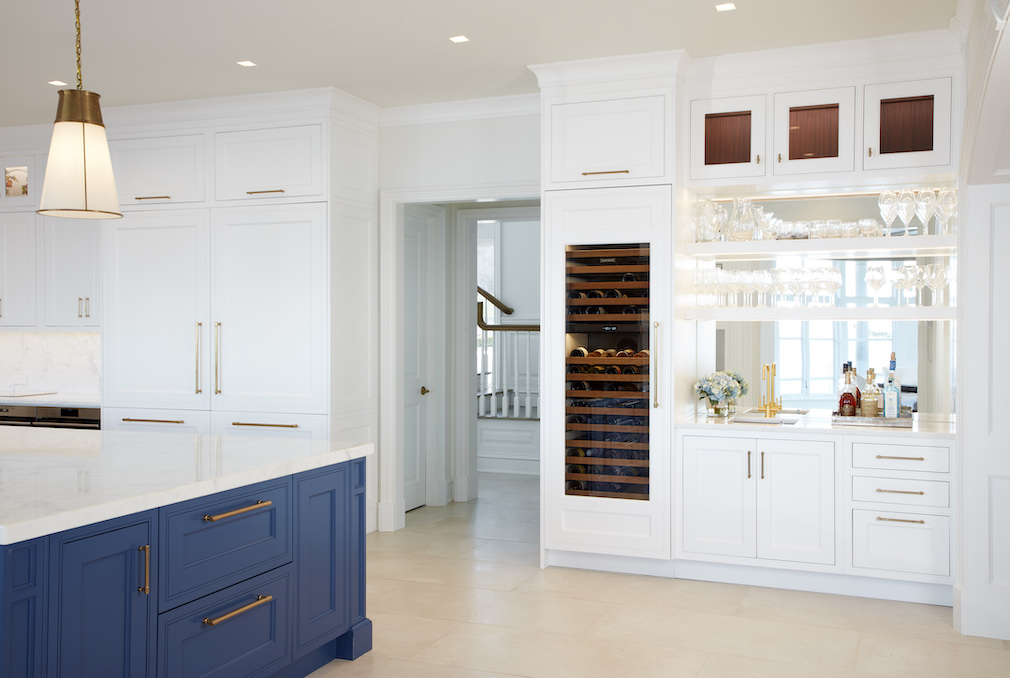 When the New York designer was tapped to take on a home in Long Island’s Kings Point enclave, she knew the kitchen would be built for entertaining. “The clients come from a very large family, so they wanted multiple options for hosting and entertaining,” she explains. “We tried to balance all the storage and stacking cabinets with open space to not make the kitchen too overbearing.”