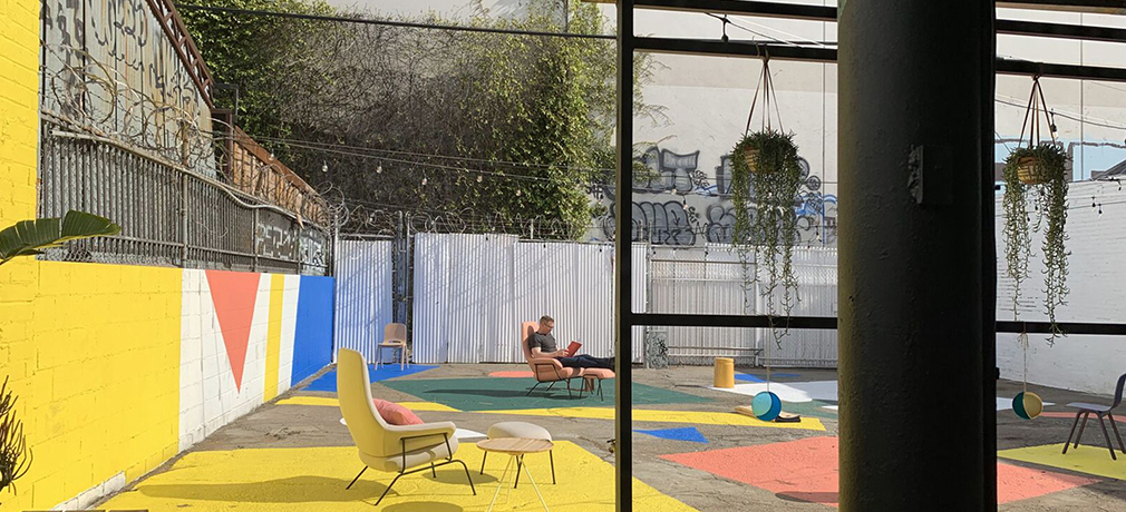 Hem specializes in partnering with vanguard designers on innovative products and furnishings for the home and workspace. Confetti Courtyard, painted directly on the surfaces of the space’s floor and walls celebrates the immersive and collaborative nature of Hem’s new West Coast headquarters through the layering of colorful graphic shapes.