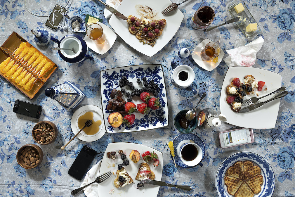 “THE IDEA OF CAPTURING GENUINE MEALS WITH OUR NEW AND UBIQUITOUS DIGITAL ENHANCEMENTS FELT APPROPRIATE AND RELEVANT. IT INSPIRED ME TO CONCEPTUALIZE IMAGES BEYOND BEAUTIFUL FOODSCAPES, REFLECTING THE SHIFTING ZEITGEIST.” —CHRISTOS J. PALIOS