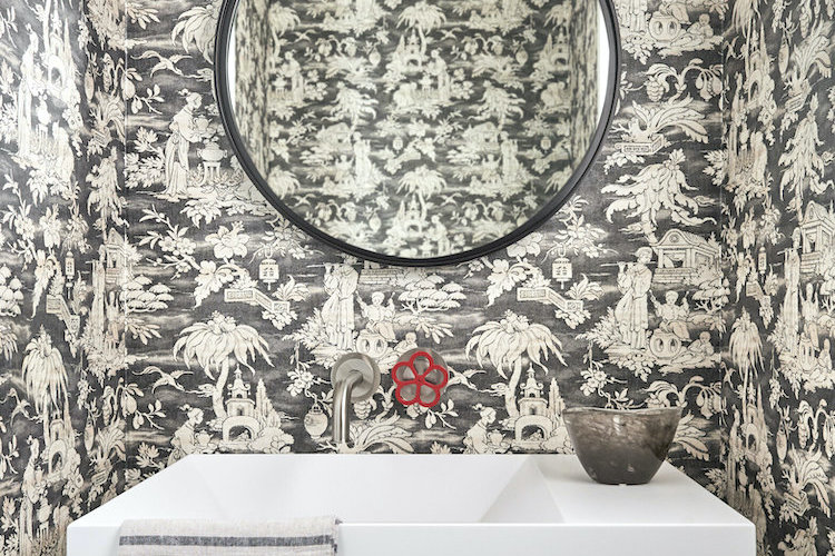 Wallcovering | Ylang silk chinoiserie from Jim Thompson • Sink | BOFFI • Photo | Jeff Johnson
