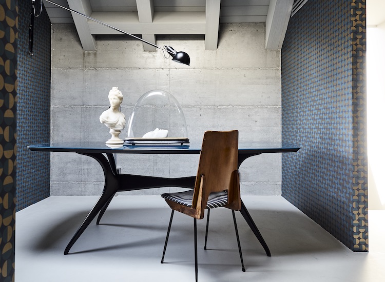 Flos 265 Lamp | Arne Jacobsen • Chair & table | Draga & Aurel • Vertigo Wallpaper | Boråstapeter • Photography | Fabrizio Cicconi