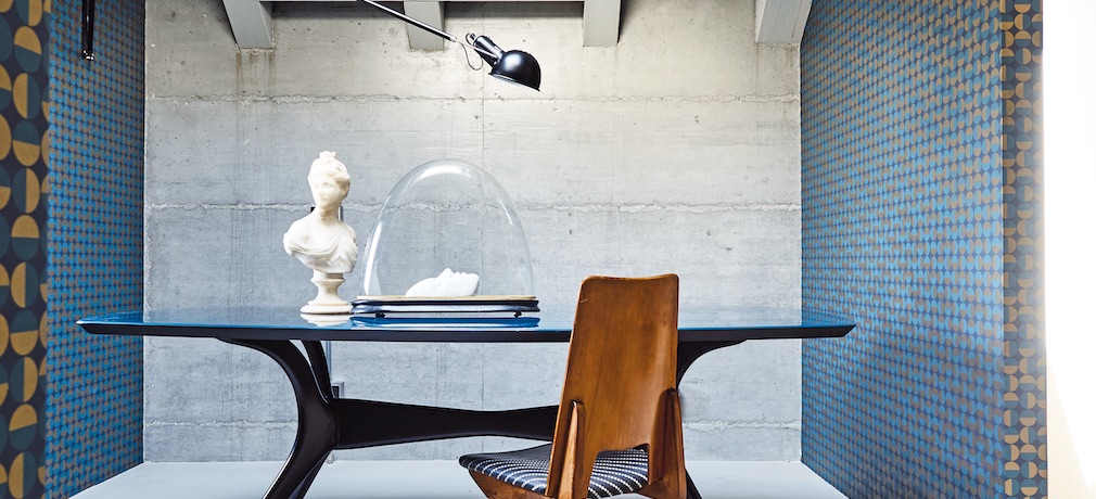 Flos 265 Lamp | Arne Jacobsen • Chair & table | Draga & Aurel • Vertigo Wallpaper | Boråstapeter • Photography | Fabrizio Cicconi