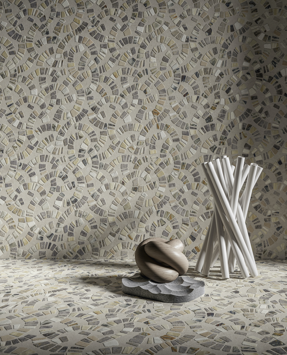 Set in Stone: These looks draw inspiration from the magnificent beauty of the Earth’s ancient geological past. Masterpieces of nature, like limestone, bluestone and slate, are represented with such precision and include characteristics like veining, coal lines and visible fossils. The visual richness of their textures, nuances and details are maintained and paired with the practicality of ceramic.