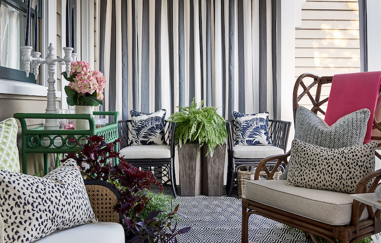 Cynthia Ferguson: As with most projects that are not for a client, it tends to take less time to design a space. I had three pieces that I wanted to use as soon as I learned I was creating an outdoor “living room” so it all fell into place quickly from there. Without many walls….or none at all….it was easy for me to design the side porch. I think I was done in a day or so!